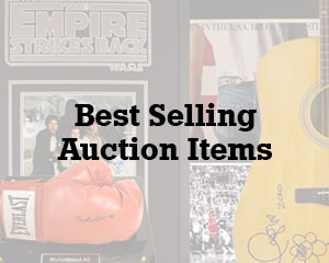Our autographed auction items undergo a detailed forensic examination by an independent third-party autograph authentication firm to confirm the authenticity of our collectibles. Upon completion, the items are issued a Certificate of Authenticity and counterfeit-proof licensed authentication holograms from the forensic authentication firm RM Real.